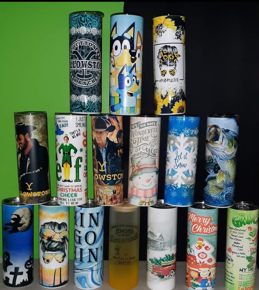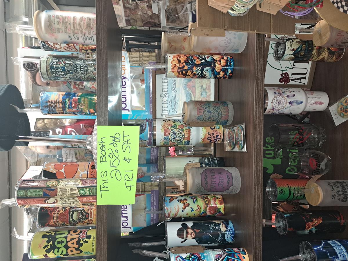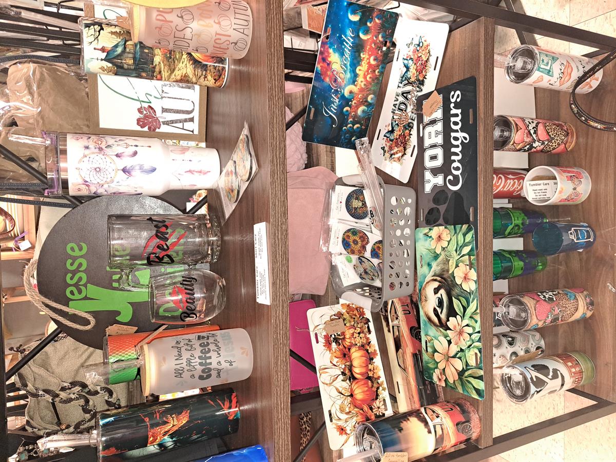 We have a variety of tumblers, shirts, license plates, etc. We can do just about any design you are looking for including custom and personalized.
