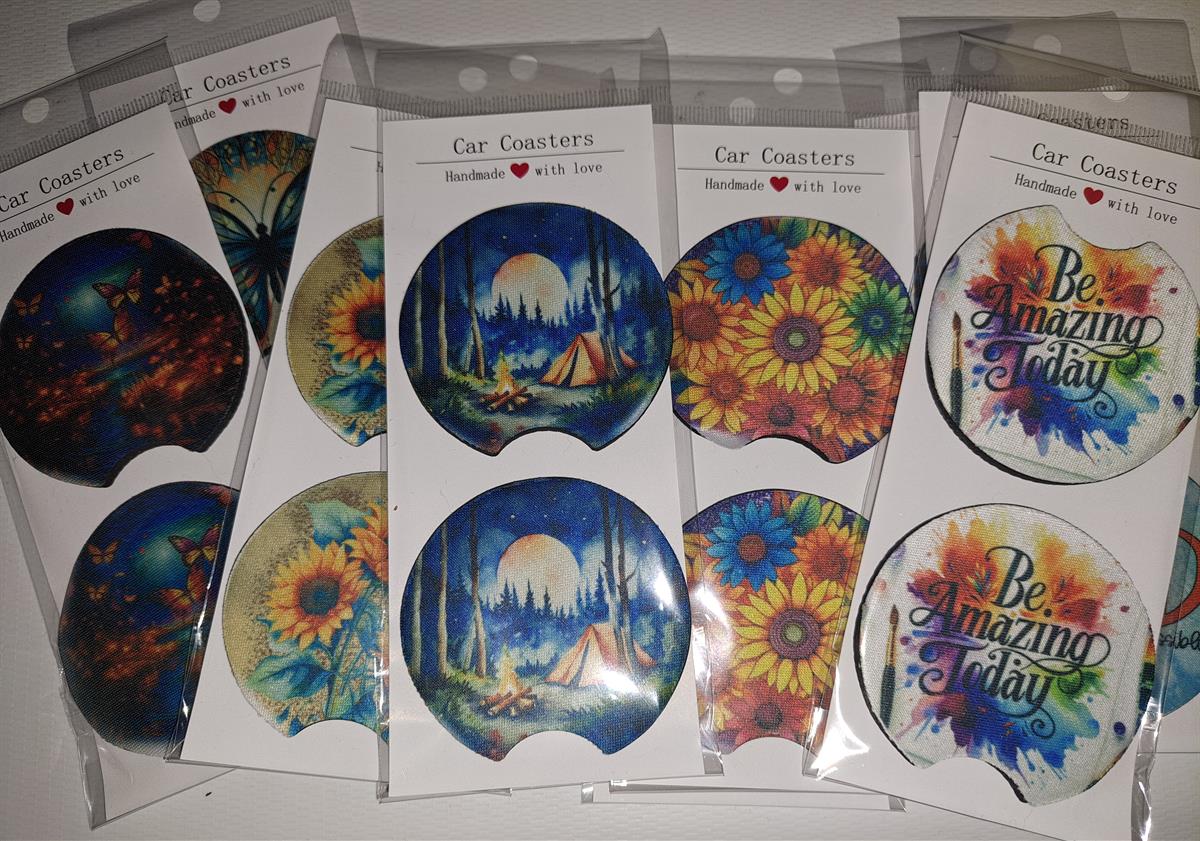 Stainless steel tumblers, glass tumblers, coffee mugs, license plates, shirts, car coasters